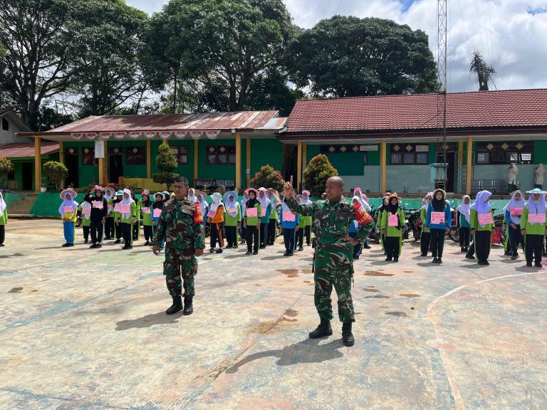 Teriakan komando terdengar lantang. Para siswa tampak bergegas, berlari kecil menuju titik formasi yang ditentukan. Mereka langsung diarahkan untuk berbaris secara disiplin, sambil diawasi oleh kedua pemateri. Namun, alih-alih disambut dengan ketegangan, suasana malah menjadi penuh makna ketika Babinsa yang bertugas mengatakan dengan nada tenang namun tegas “Kami datang bukan untuk menghukum kalian. Harimau tidak akan memakan anaknya. Kami hadir di sini atas permintaan kepala madrasah untuk memberikan pembekalan. Kami ingin kalian semua tumbuh menjadi generasi kuat, sehat, dan siap menghadapi masa depan,” ujarnya membuka materi.